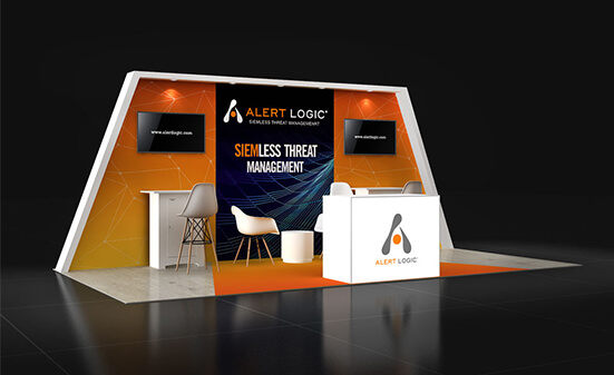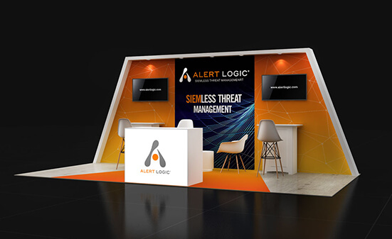 When you want to give your customers a premium experience to discuss business the UE1020 01 offers more. With a classy lounge, a closed meeting room, and an open workstation area you can engage your regular clients, prospects and walk-in visitors with ease. The reception counter has plenty of lockable storage and is placed with a back wall graphic in a way that the booth has good elbow room for easy movement.