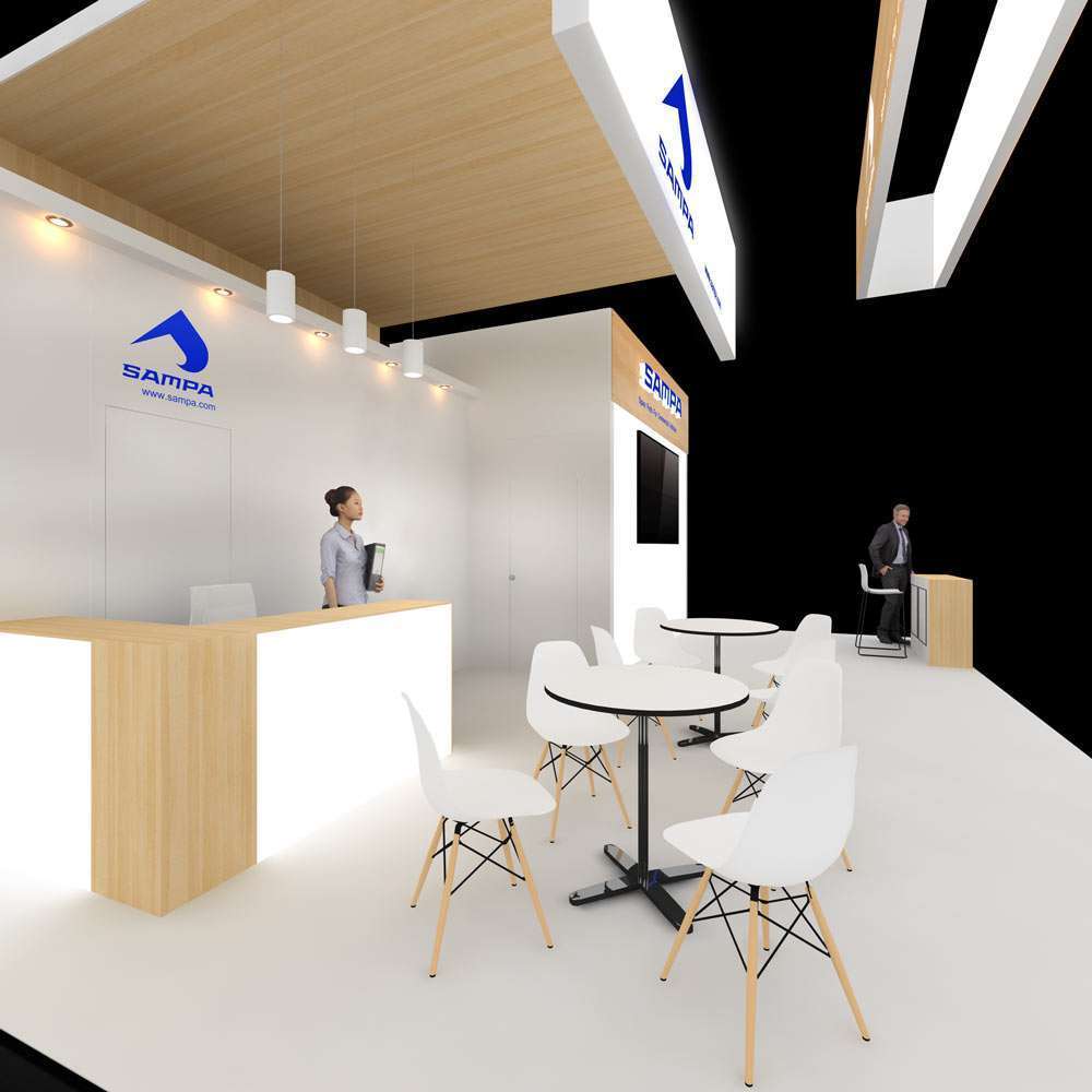 * Custom booth structures and built-in features