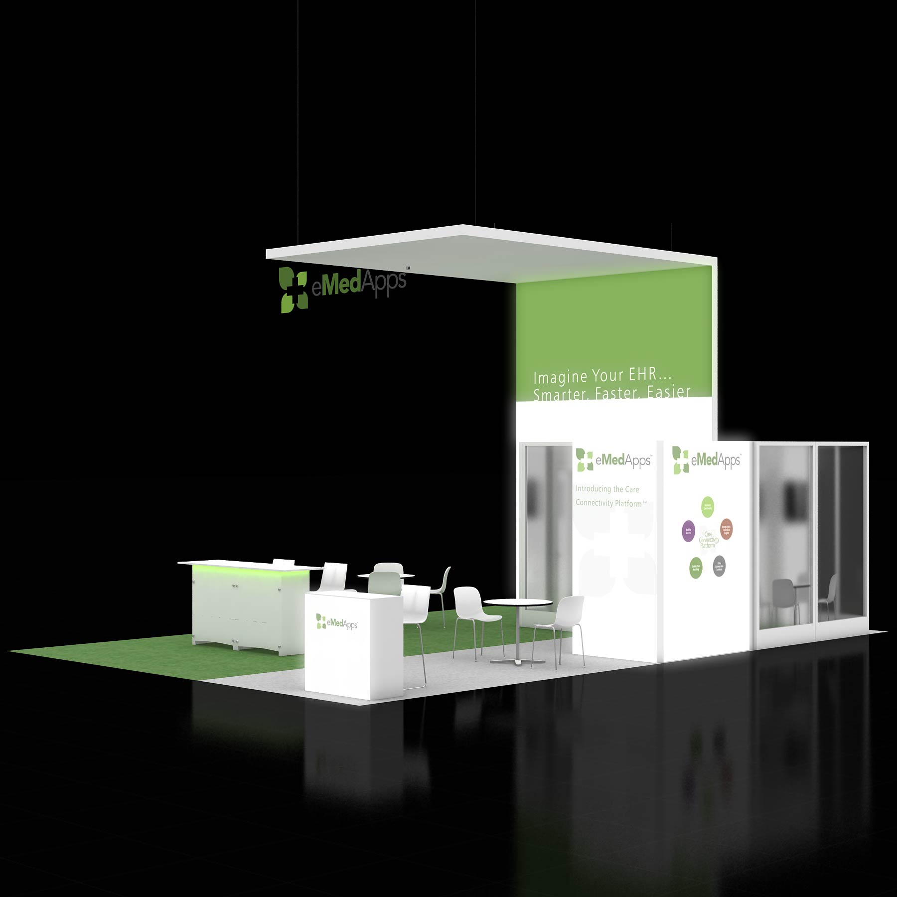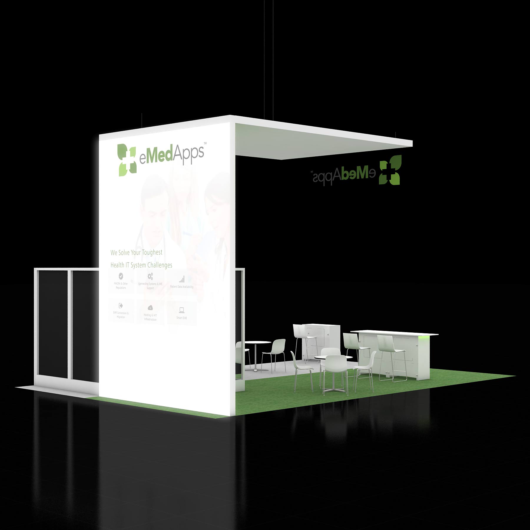 * Custom booth structures and built-in features